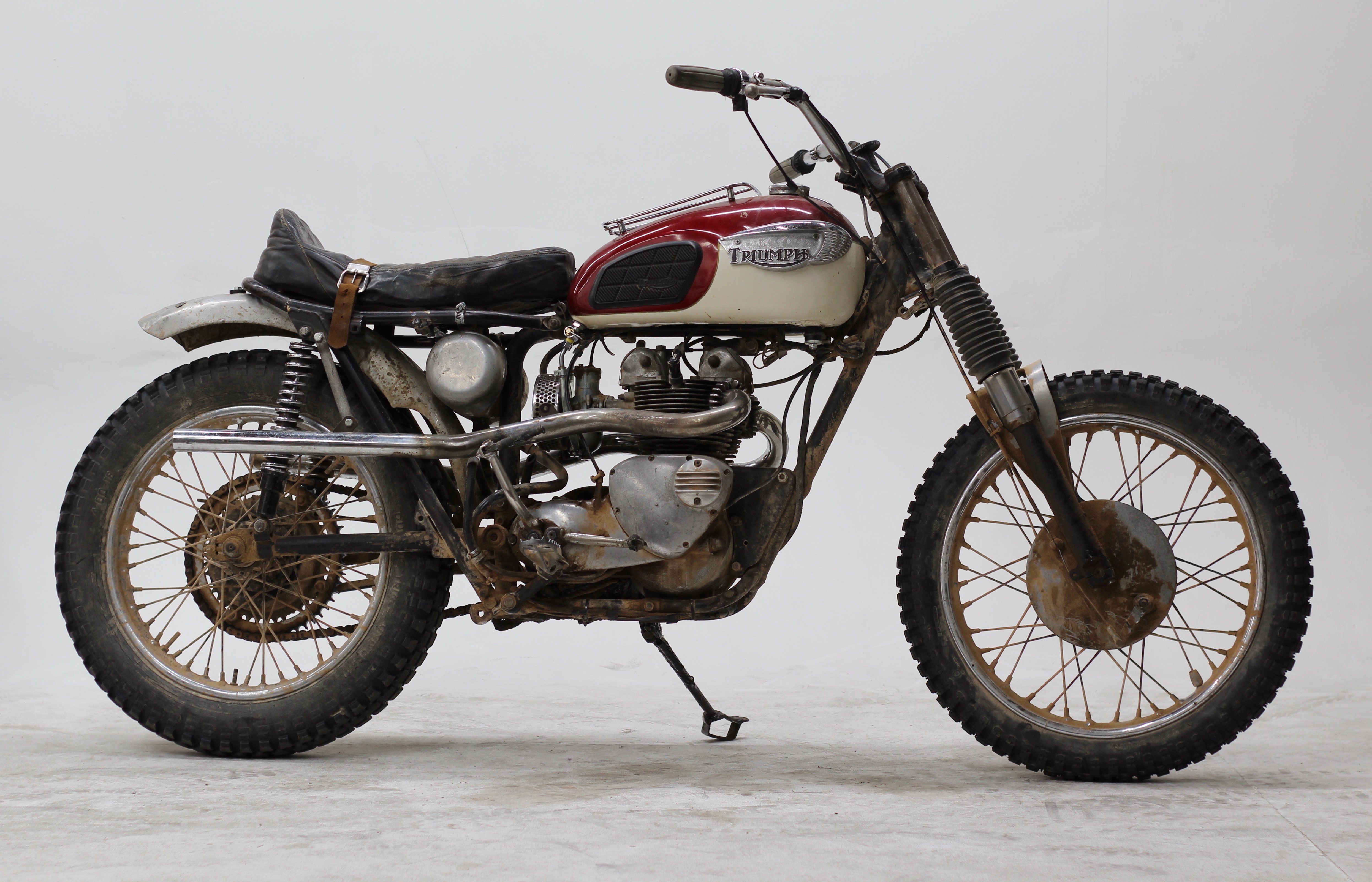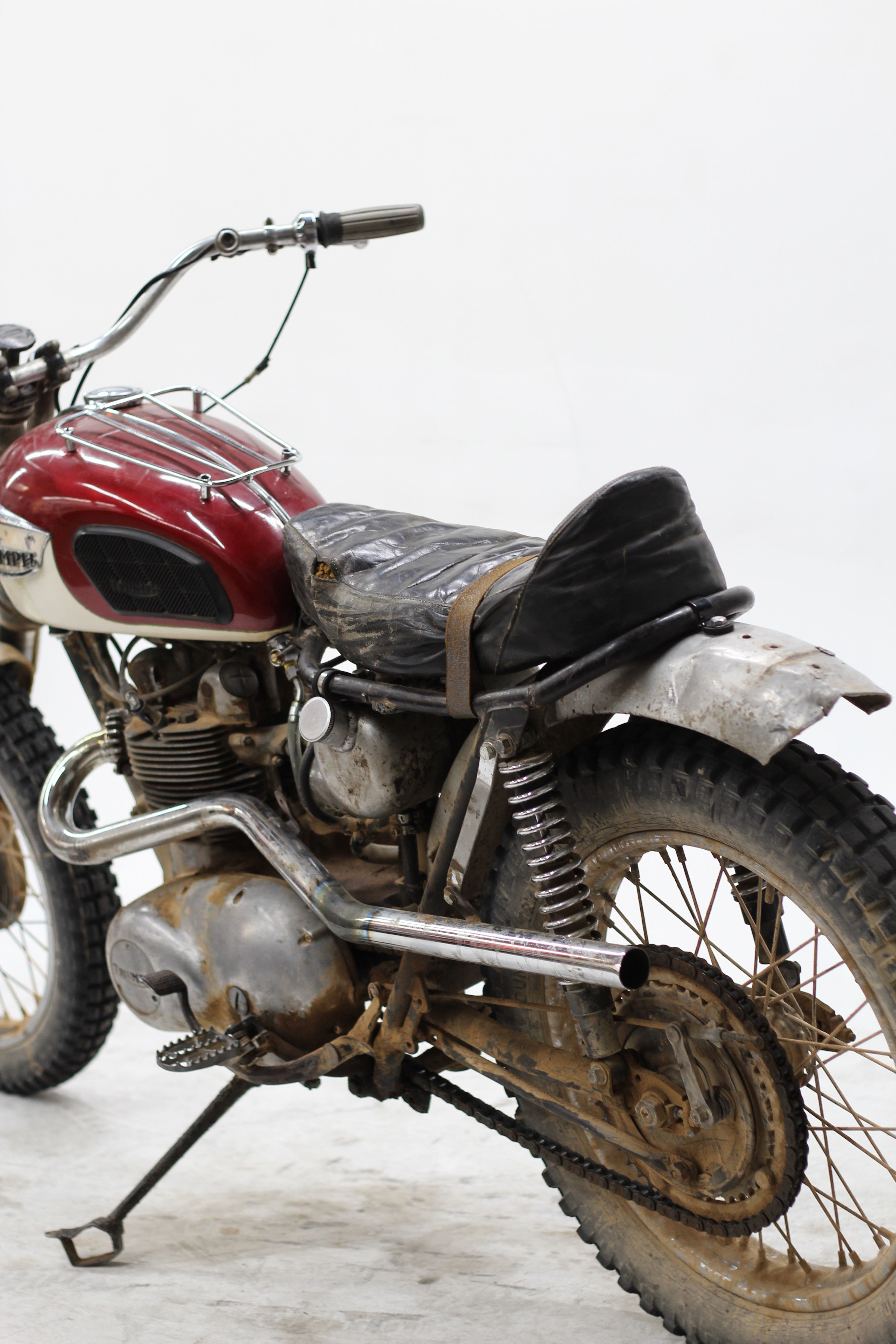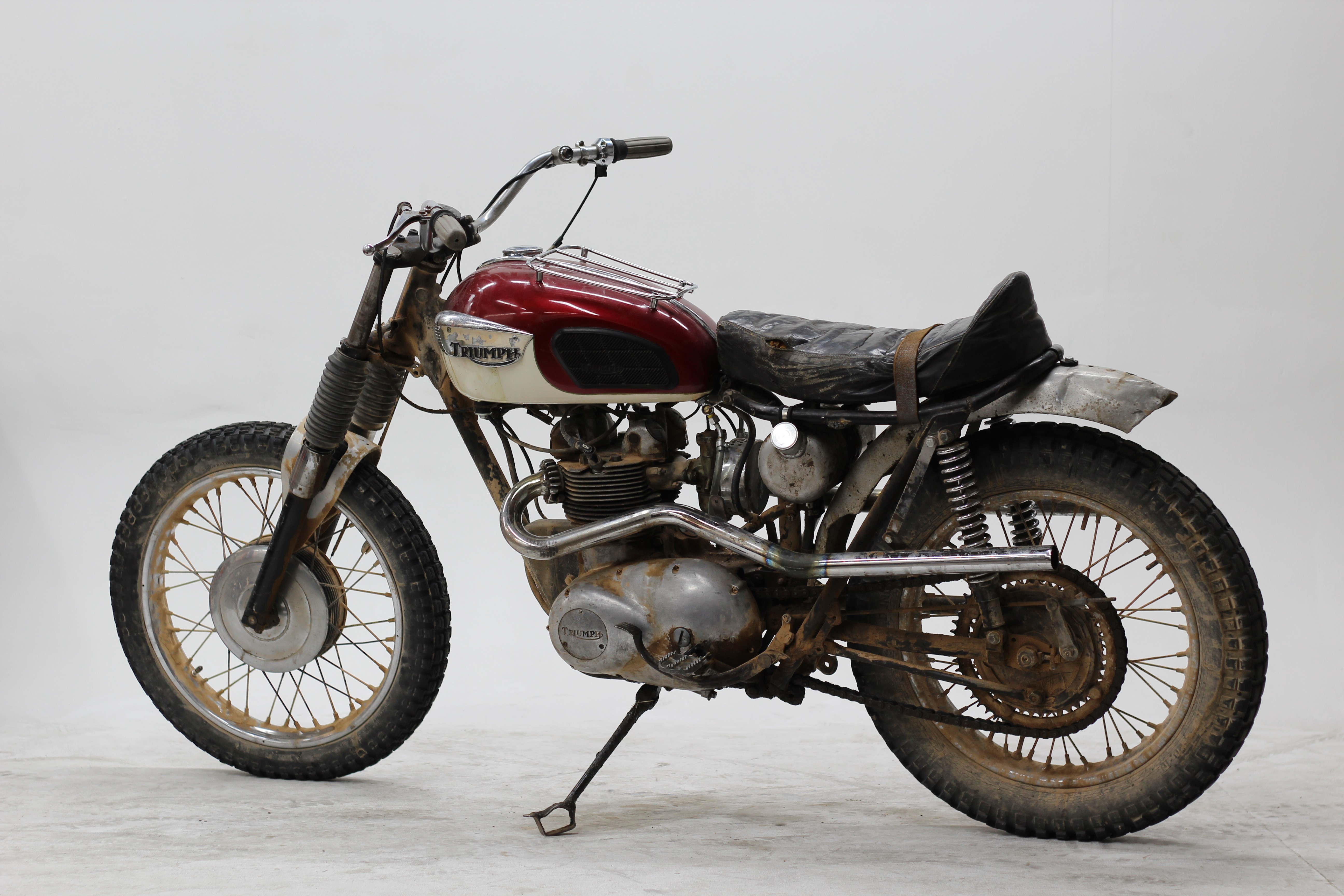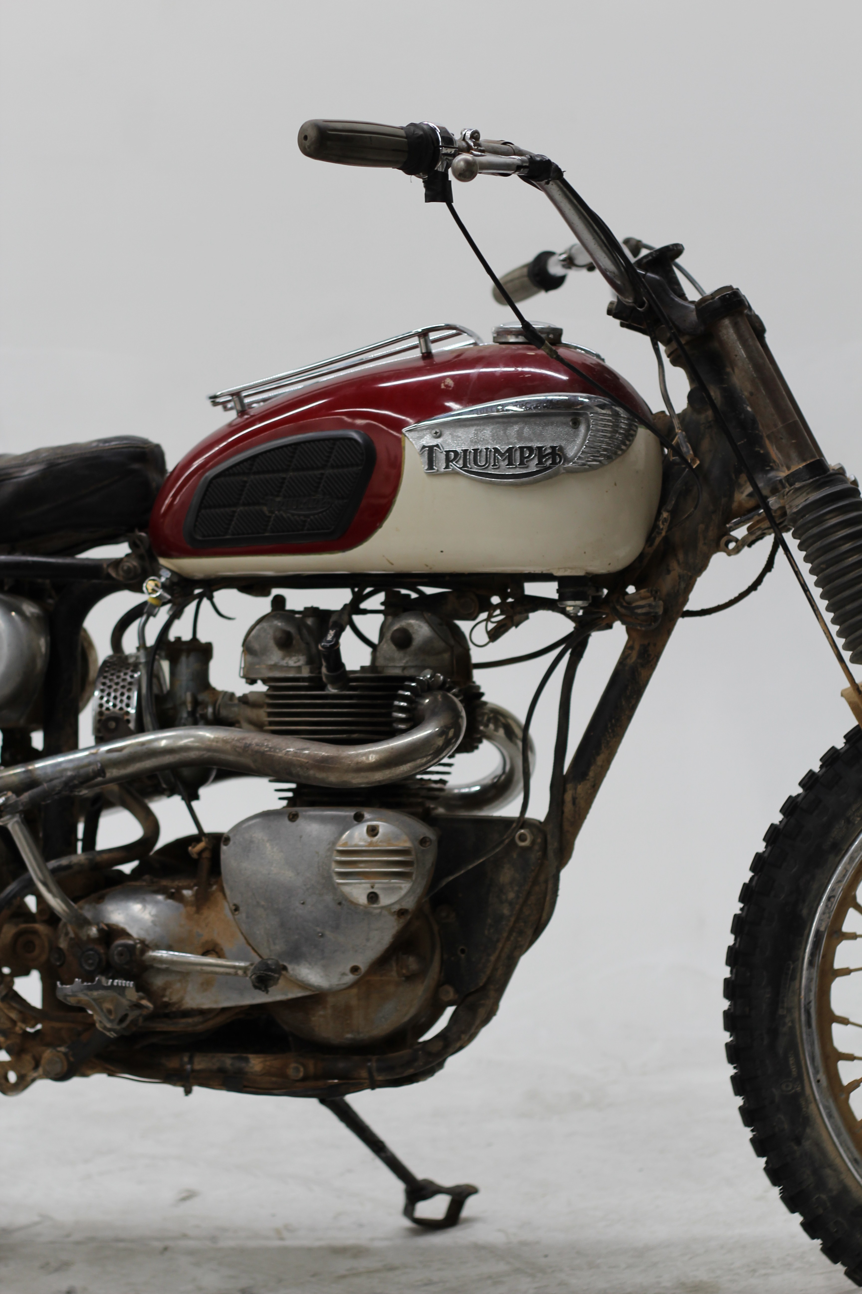 Triumph, recognizing the demand for a competition-ready off-road machine, introduced the T100C. It came factory-equipped with features suited for off-road riding—high pipes, a skid plate, and a responsive 500cc parallel twin engine that was easier to handle in the dirt than its bigger 650cc counterpart.